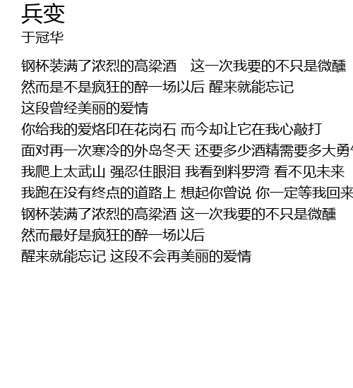 | 钢杯装满了浓烈的高梁酒 这一次我要的不只是微醺 | |