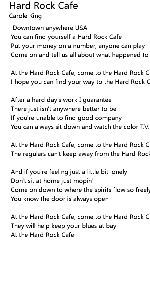 At the Hard Rock Cafe, come to the Hard Rock Cafe |