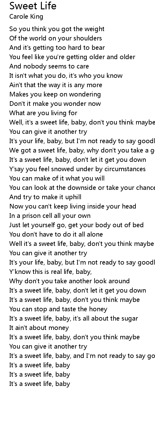 Well it's a sweet life, baby, don't you think maybe