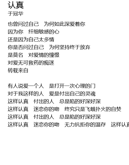 | 这样认真 迷恋你的吻 无力抗拒你的温存 这样认真 |