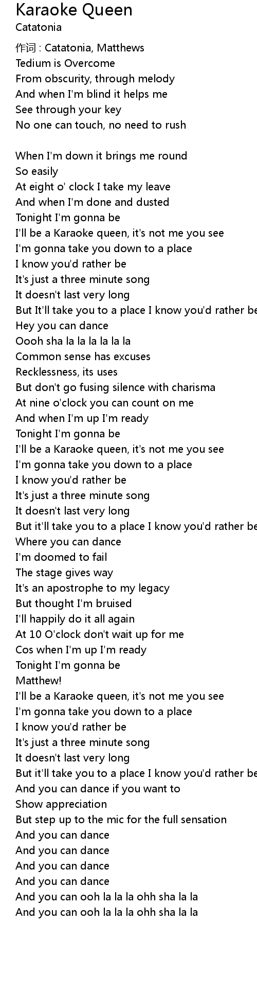 | I' ll be a Karaoke queen, it' s not me you see | |