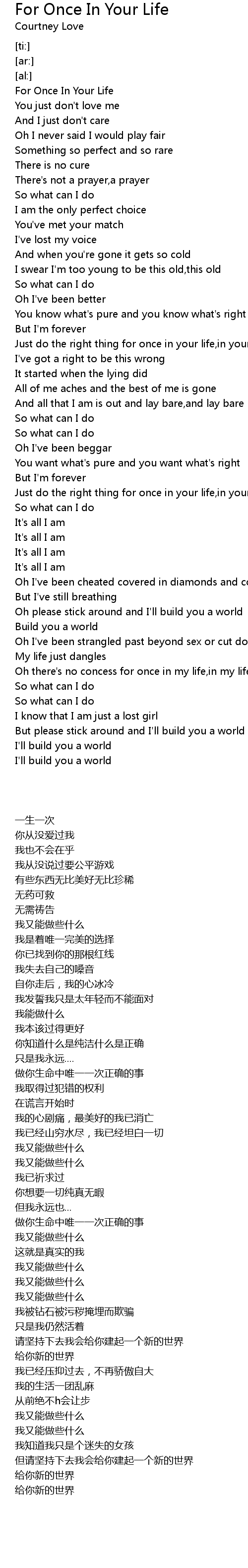 For Once In Your Life |