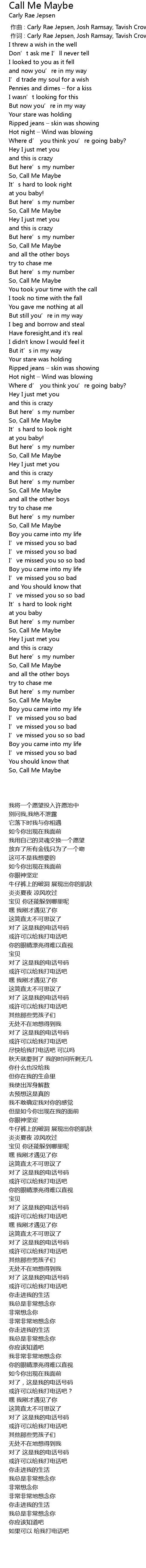 | 歌曲 | Call Me Maybe |