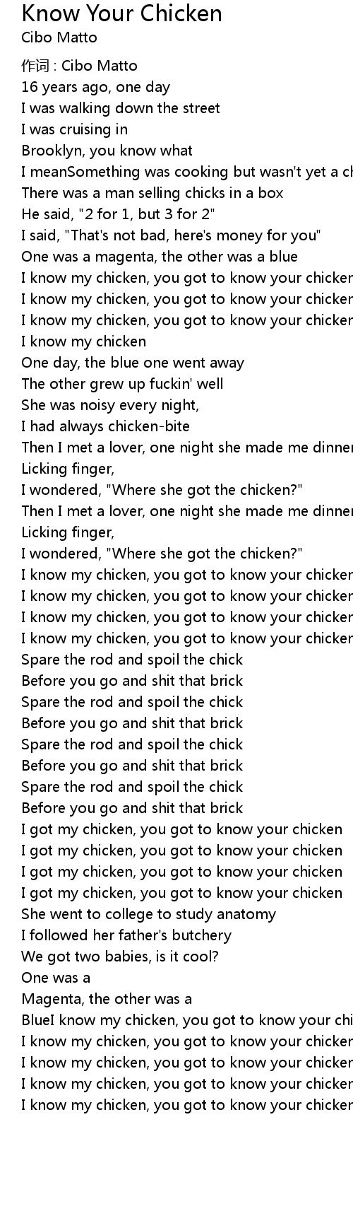 | 歌曲 | Know Your Chicken |