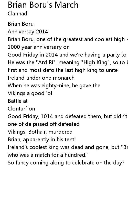 Brian Boru, one of the greatest and coolest high kings of ireland, will have his 1000 year anniversary on |