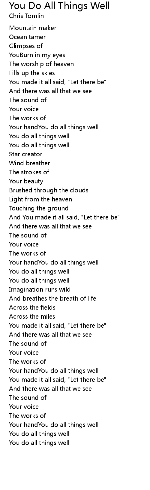 Your handYou do all things well |