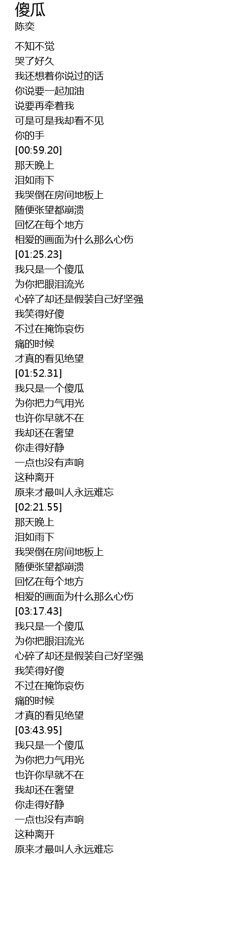 | [03:45.34] | wǒ zhǐ shì yí gè shǎ guā |