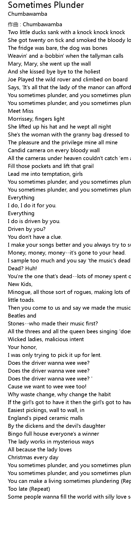 | 歌曲 | Sometimes Plunder |
