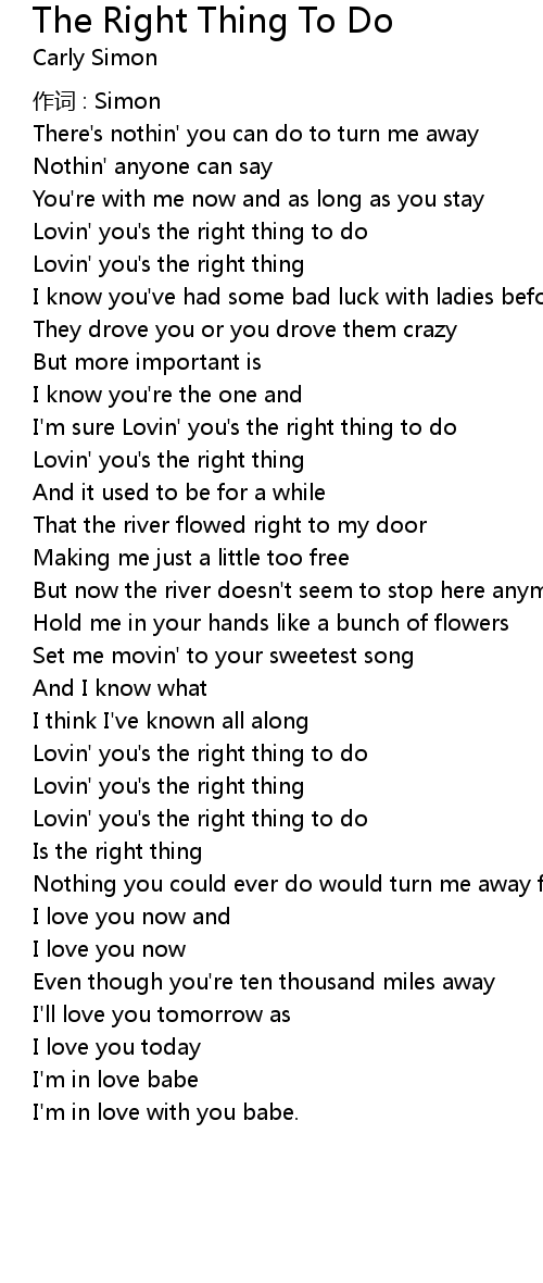 | 歌曲 | The Right Thing To Do |