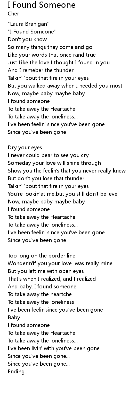 And baby, I found someone |