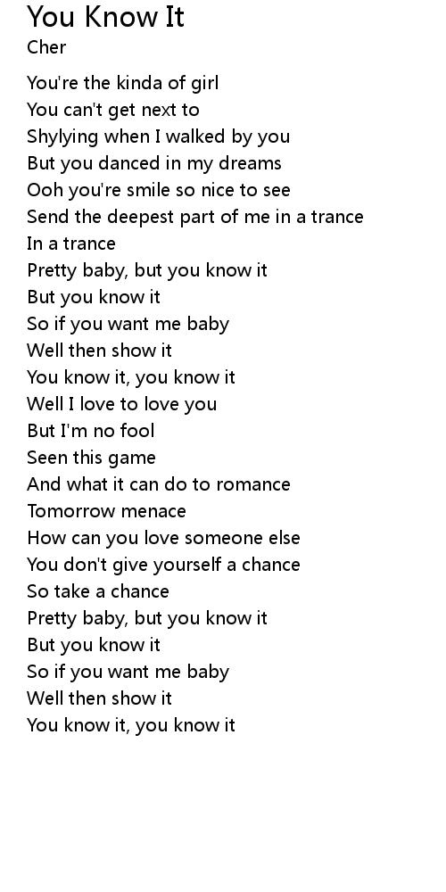 Pretty baby, but you know it |