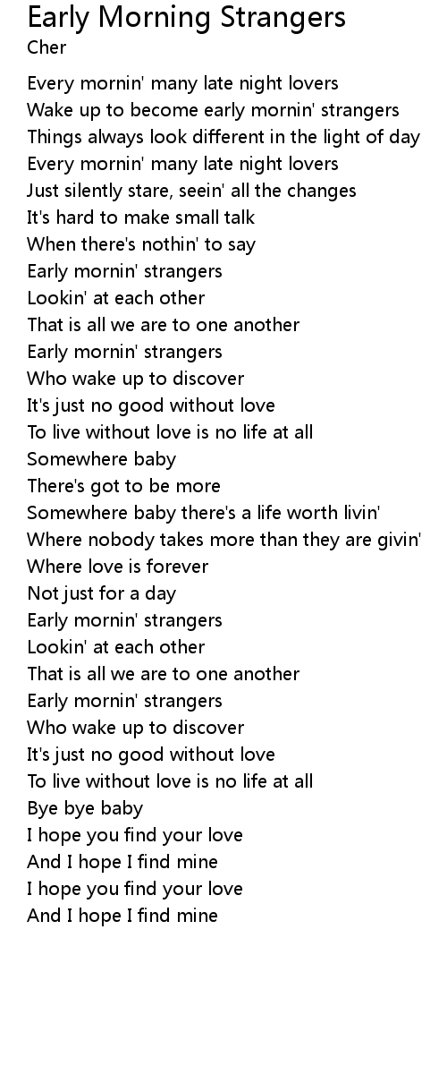 Wake up to become early mornin' strangers |