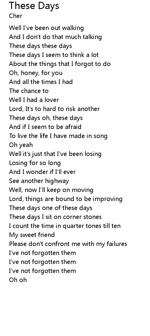 | These days oh, these days | |