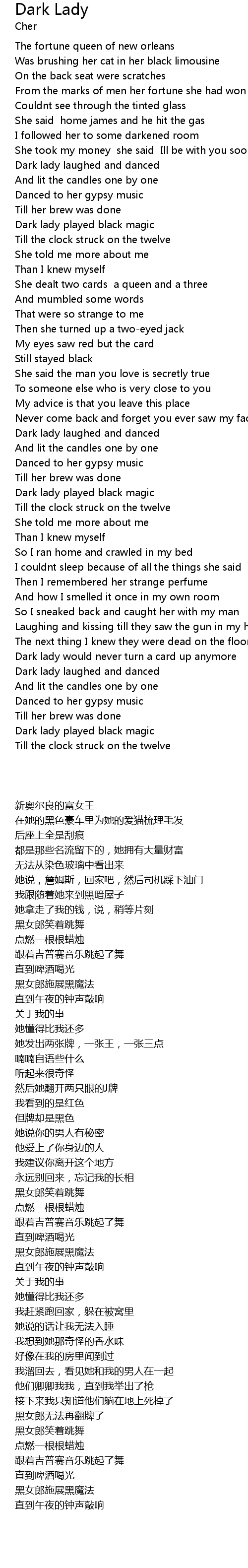 Dark lady laughed and danced |