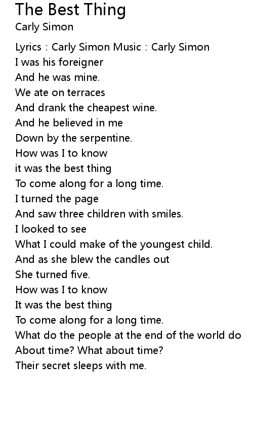| Lyrics:Carly Simon Music:Carly Simon | |