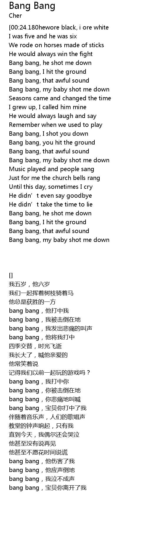 | [02:20.130] | bang bang,宝贝你离开了我 |