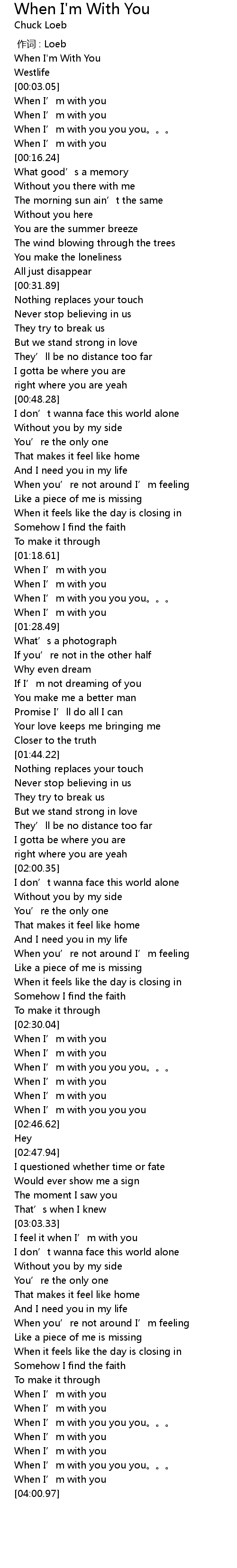 | [03:49.11] | When I' m with you |