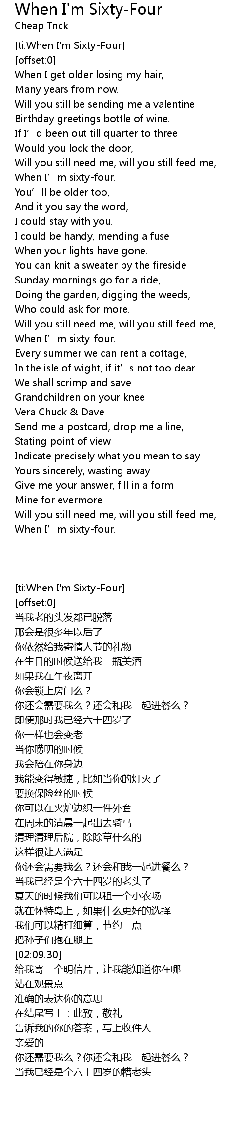| [02:44.70] | When I’m sixty-four. |