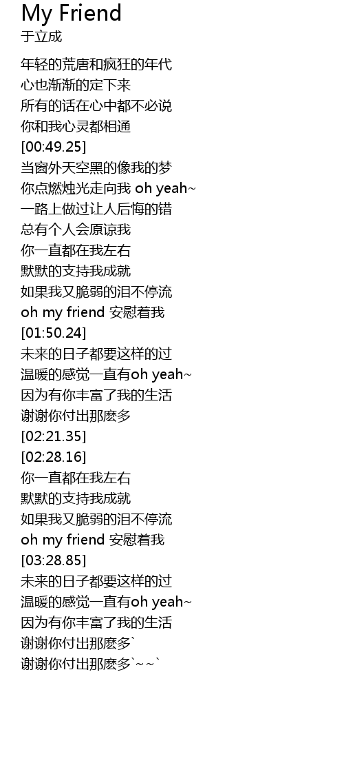 | [01:46.61] | oh my friend 安慰着我 |