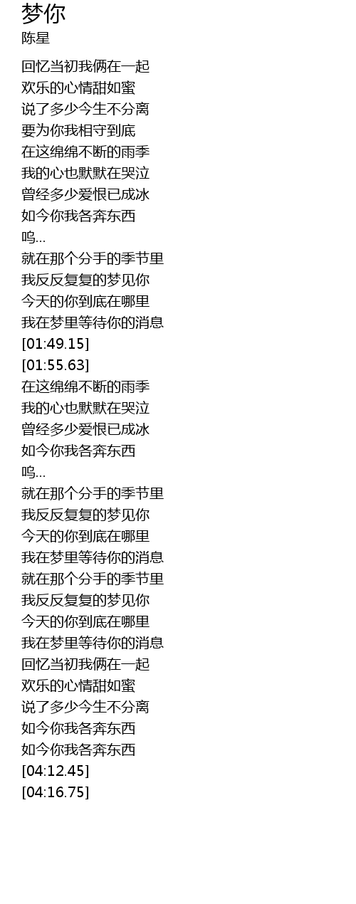 | [03:19.50] | 我反反复复的梦见你 |