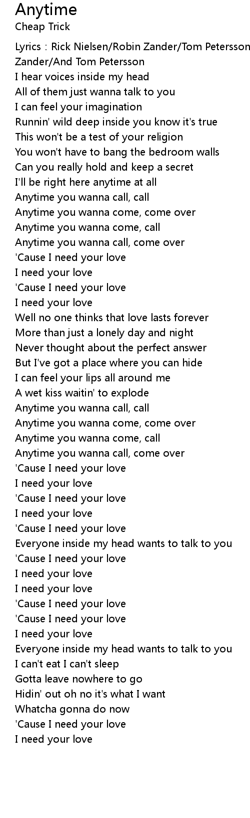 | Lyrics:Rick Nielsen/Robin Zander/Tom Petersson Music:Rick Nielsen/Robin Zander/And Tom Petersson | |