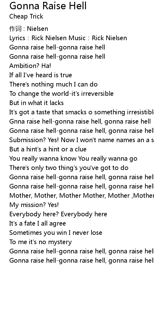 | Gonna raise hell-gonna raise hell | |
