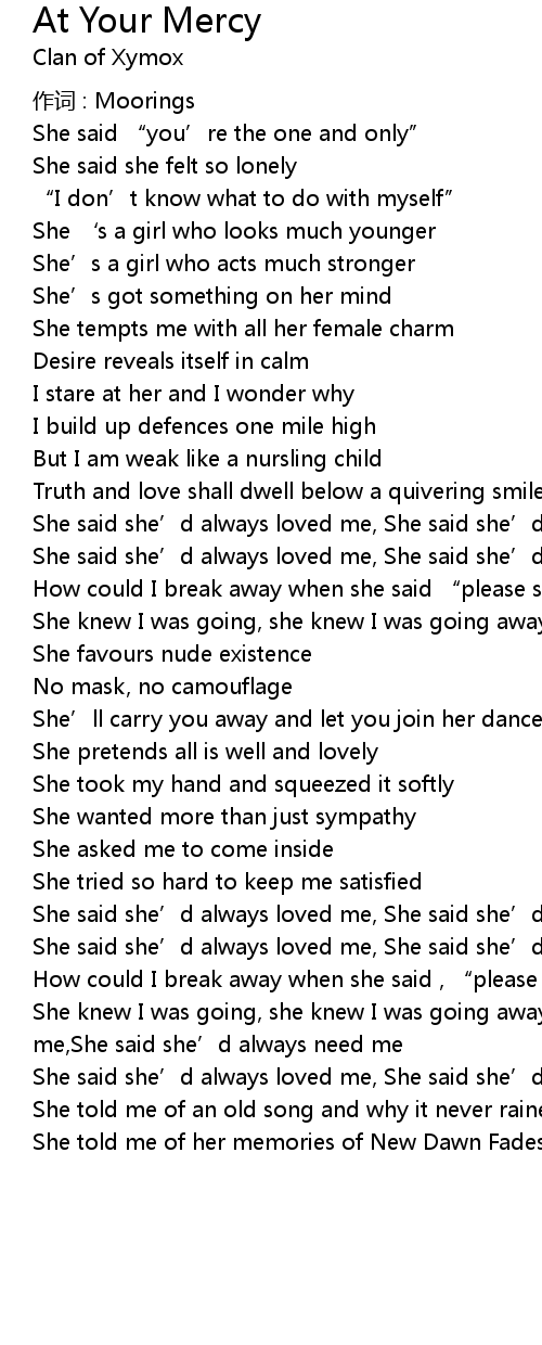 | 歌曲 | At Your Mercy |