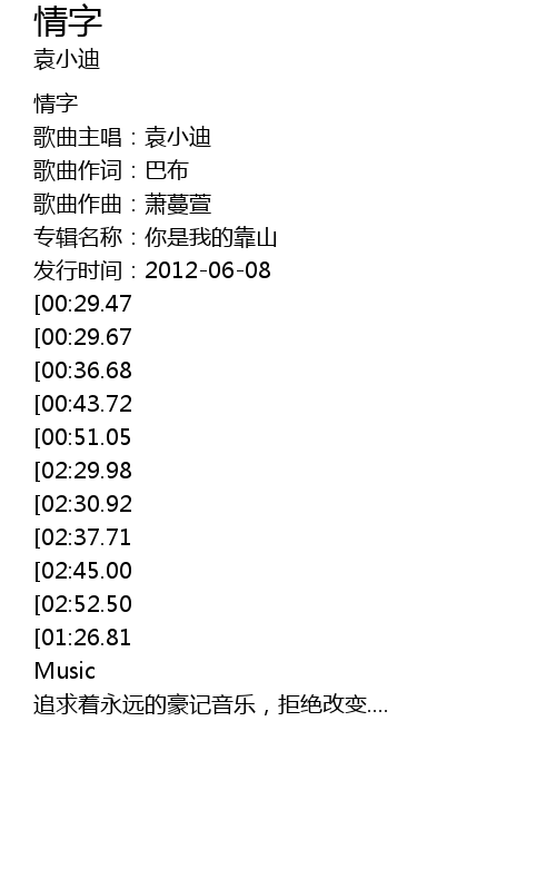 | [00:03.89] | 歌曲主唱:袁小迪 |