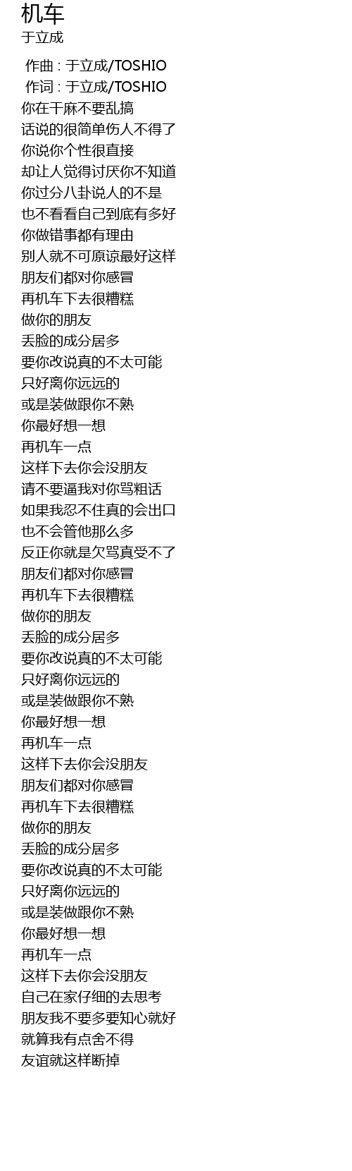 | [00:01.00] | 作词 : 于立成/TOSHIO |