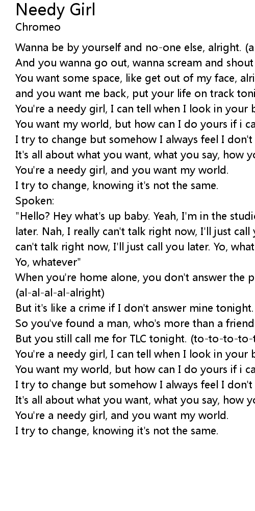 You're a needy girl, and you want my world. |