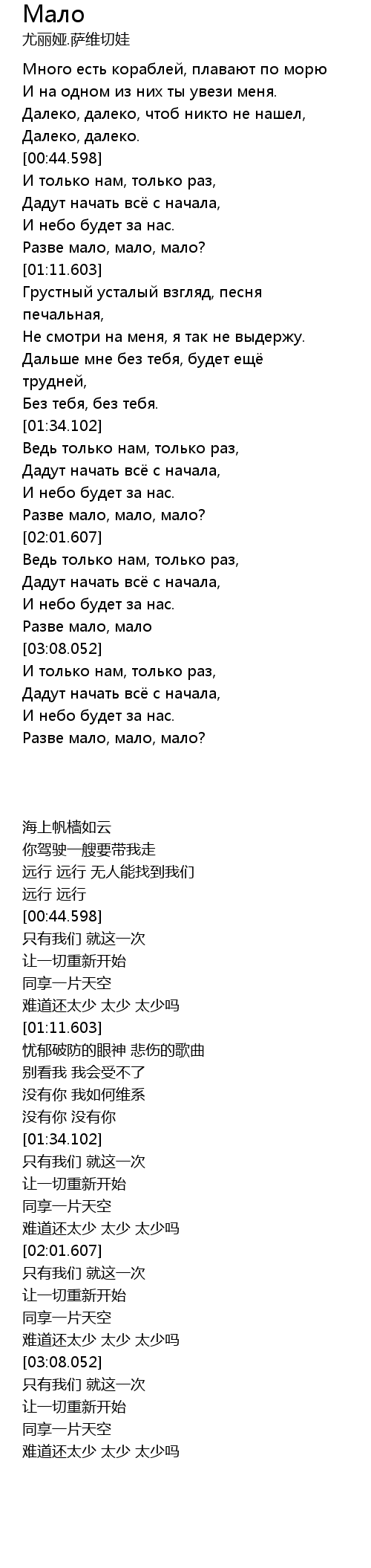 | [01:01.108] | Разве мало, мало, мало? |