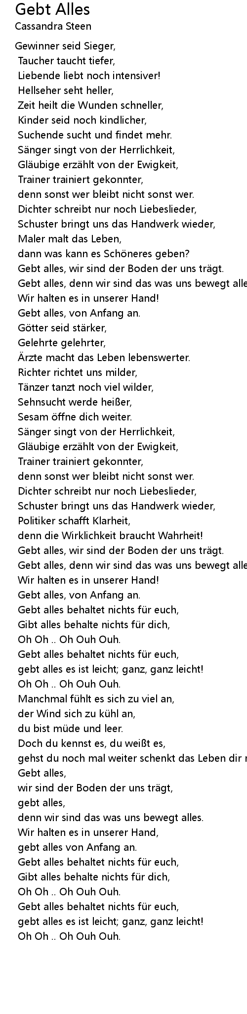 | Gebt alles, | |