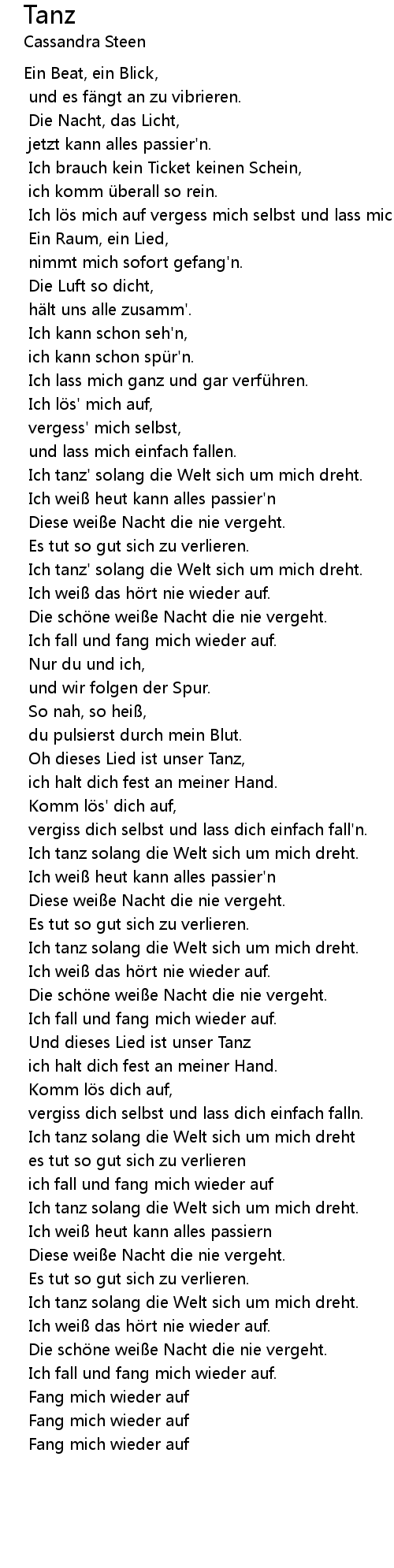 | Ich tanz' solang die Welt sich um mich dreht. | |