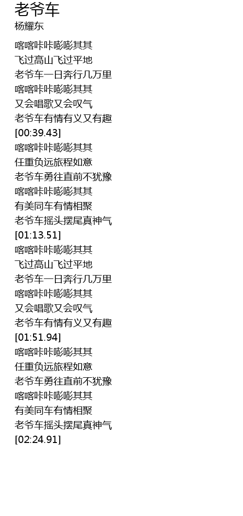 | [01:45.30] | lao ye che you qing you yi you you qu |