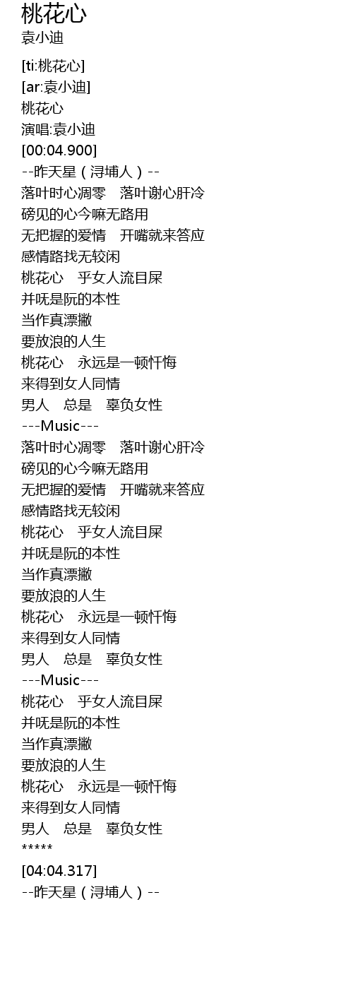 | [03:26.472] | 桃花心 乎女人流目屎 |