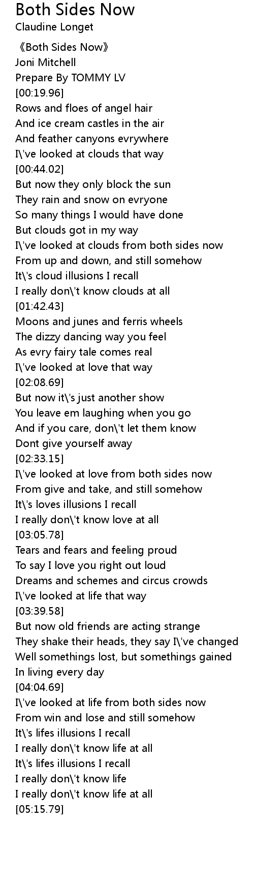 | [00:02.30] | 《Both Sides Now》 |