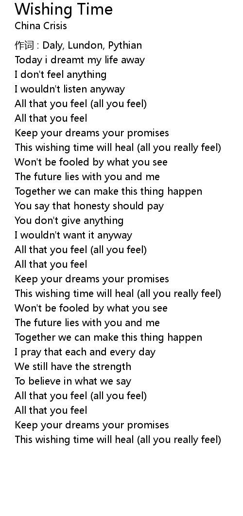 | This wishing time will heal (all you really feel) | |