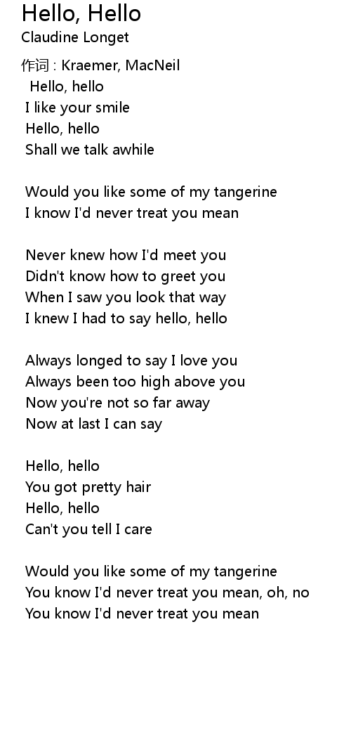 | I knew I had to say hello, hello | |