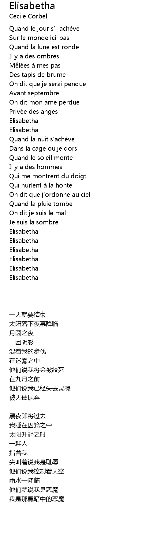 | 歌曲 | Elisabetha |