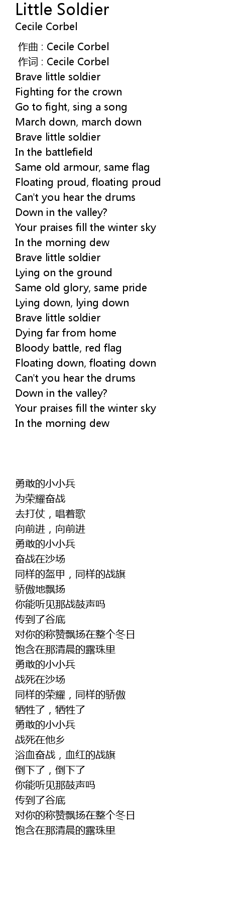 | 歌曲 | Little Soldier |