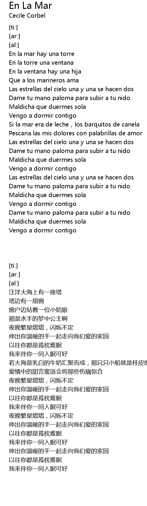 | [00:32.98] | En la mar hay una torre |