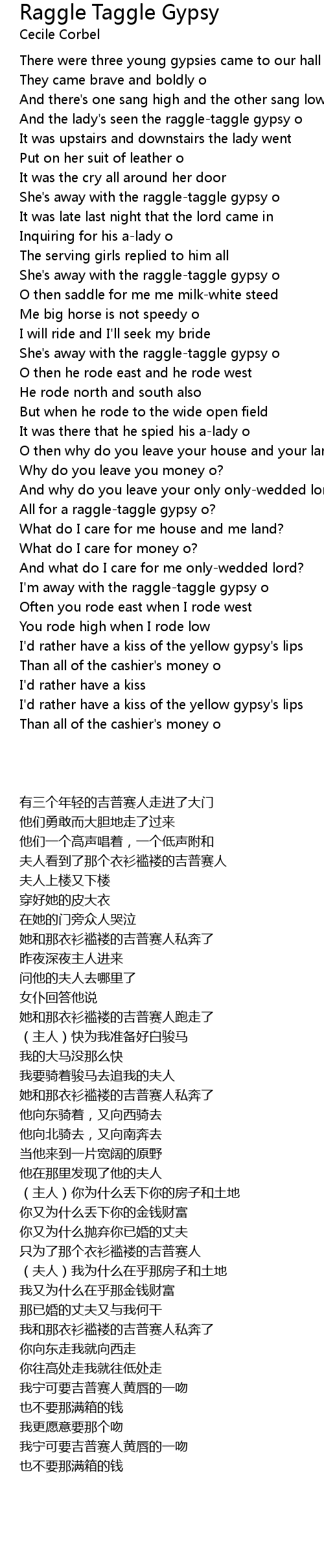 And the lady's seen the raggle-taggle gypsy o |