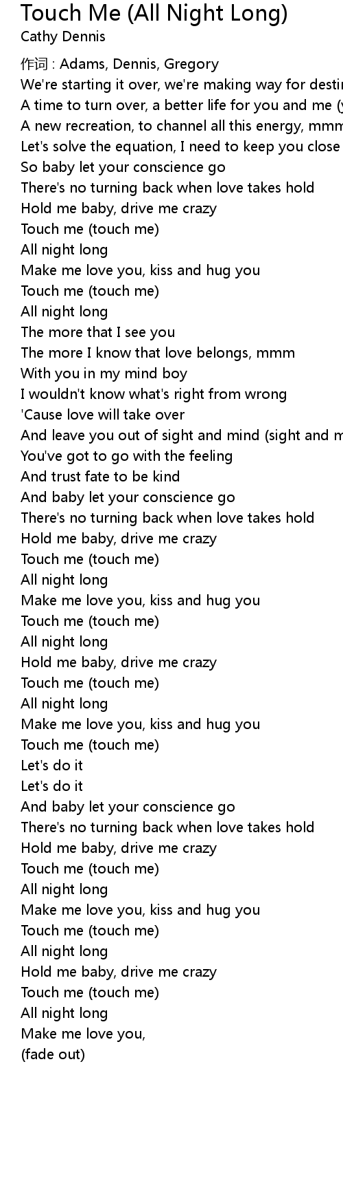 | 歌曲 | Touch Me (All Night Long) |