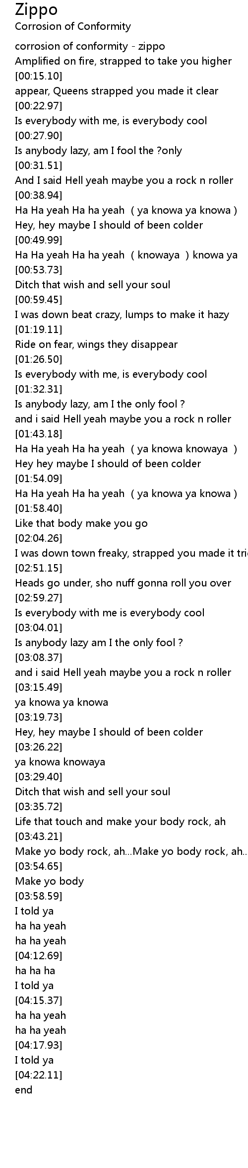 | [00:02.53] | corrosion of conformity zippo |