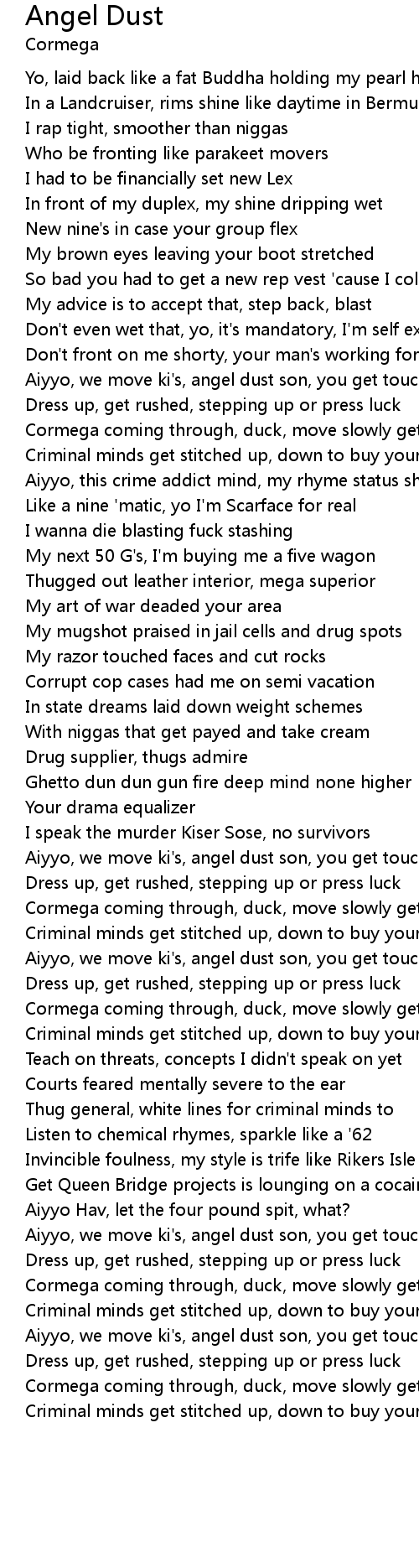 Aiyyo, we move ki's, angel dust son, you get touched |