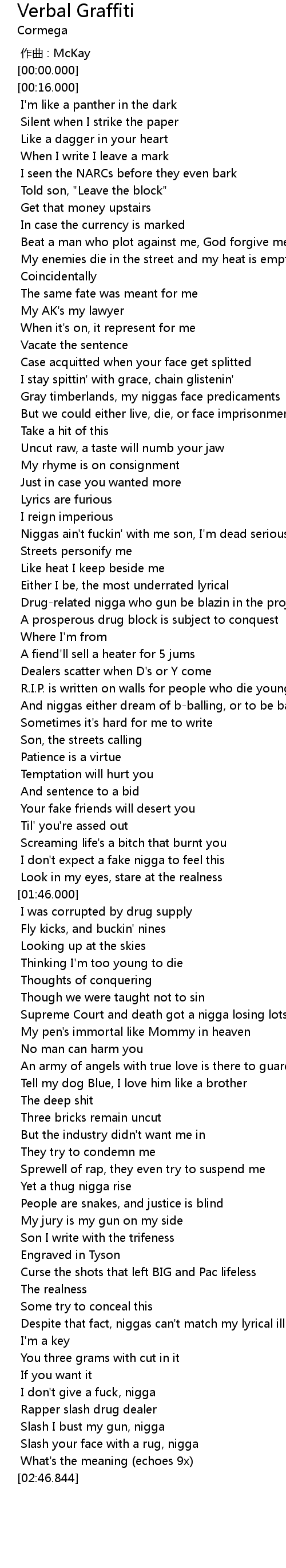 | [01:07.188] | Drug-related nigga who gun be blazin in the projects |
