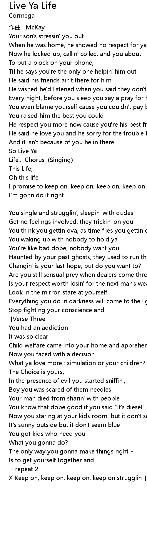 | Live Ya Life... [Chorus] [Verse Three] | |