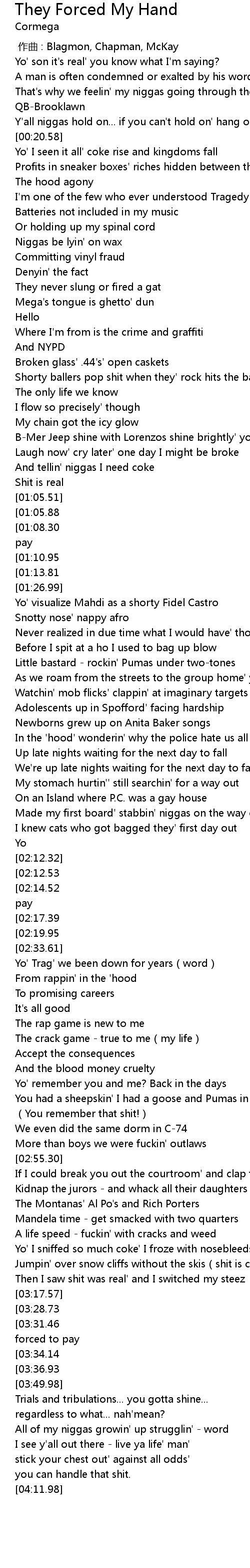 | [03:42.52][03:31.46][03:20.54] | But niggas talk it and don't live it' then they forced to pay |