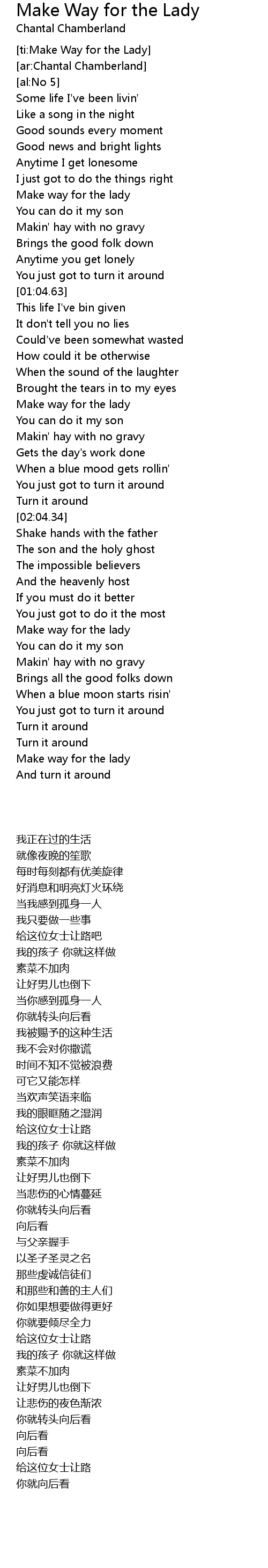[ti:Make Way for the Lady] |