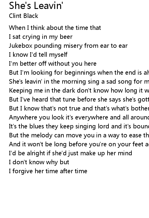 She's leavin' in the morning sing a sad song for me |